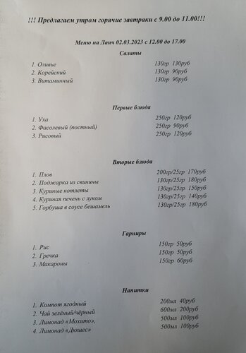 Очень вкусная еда, обеды, куриный супчик вообще огонь, а пирожки с картошкой просто шикарные, всегда все свеженькое и цены приятные, спасибо руководству и персоналу за такое хорошее обслуживания и вкусную еду . 100 баллов👍👍👍👍