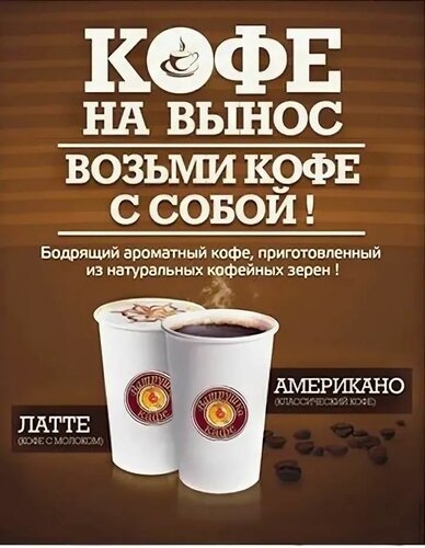 Отличное бодрящее кофе,есть завтраки ,бизнес ланч и основное меню в котором много разнообразных блюд.